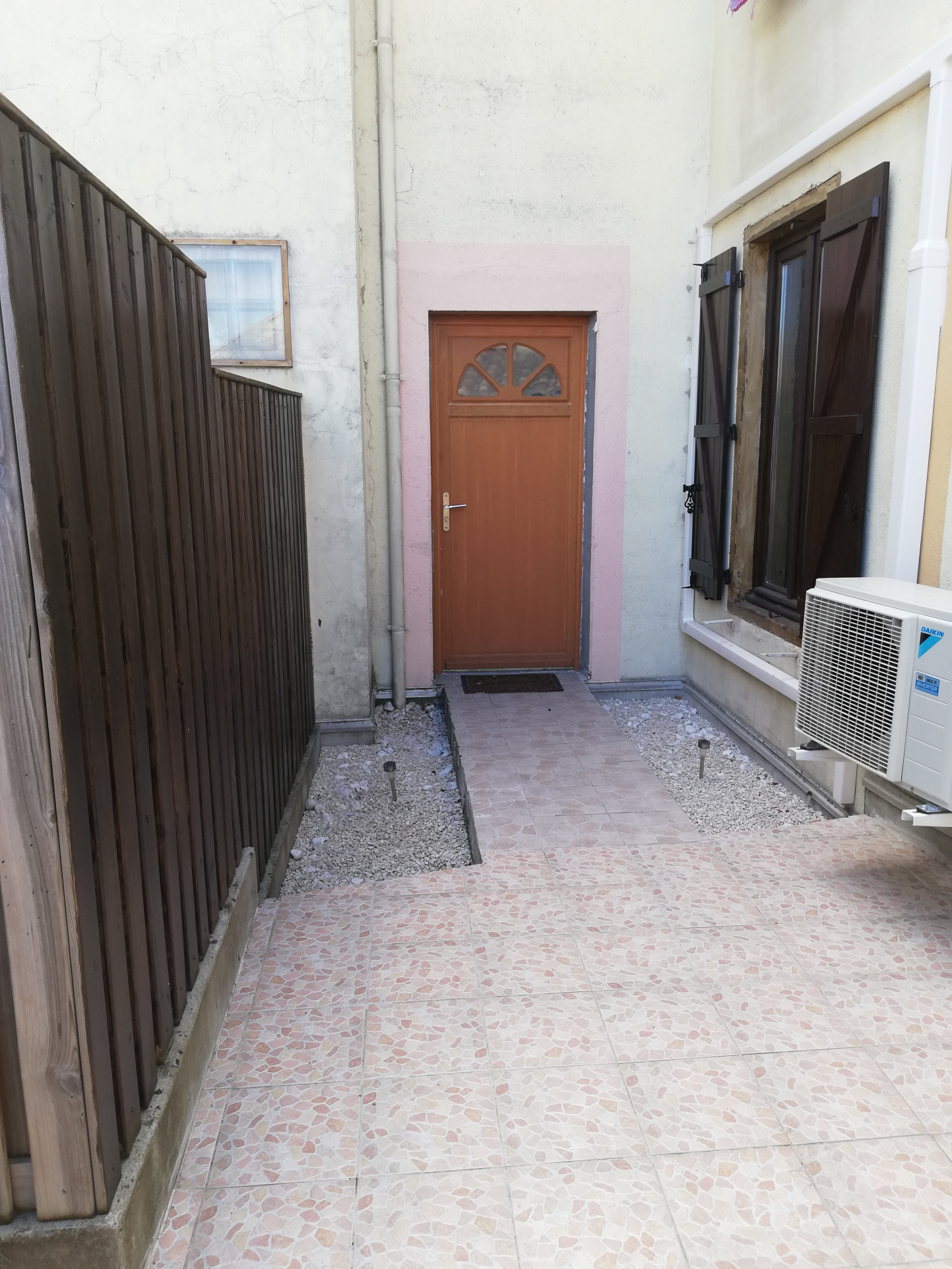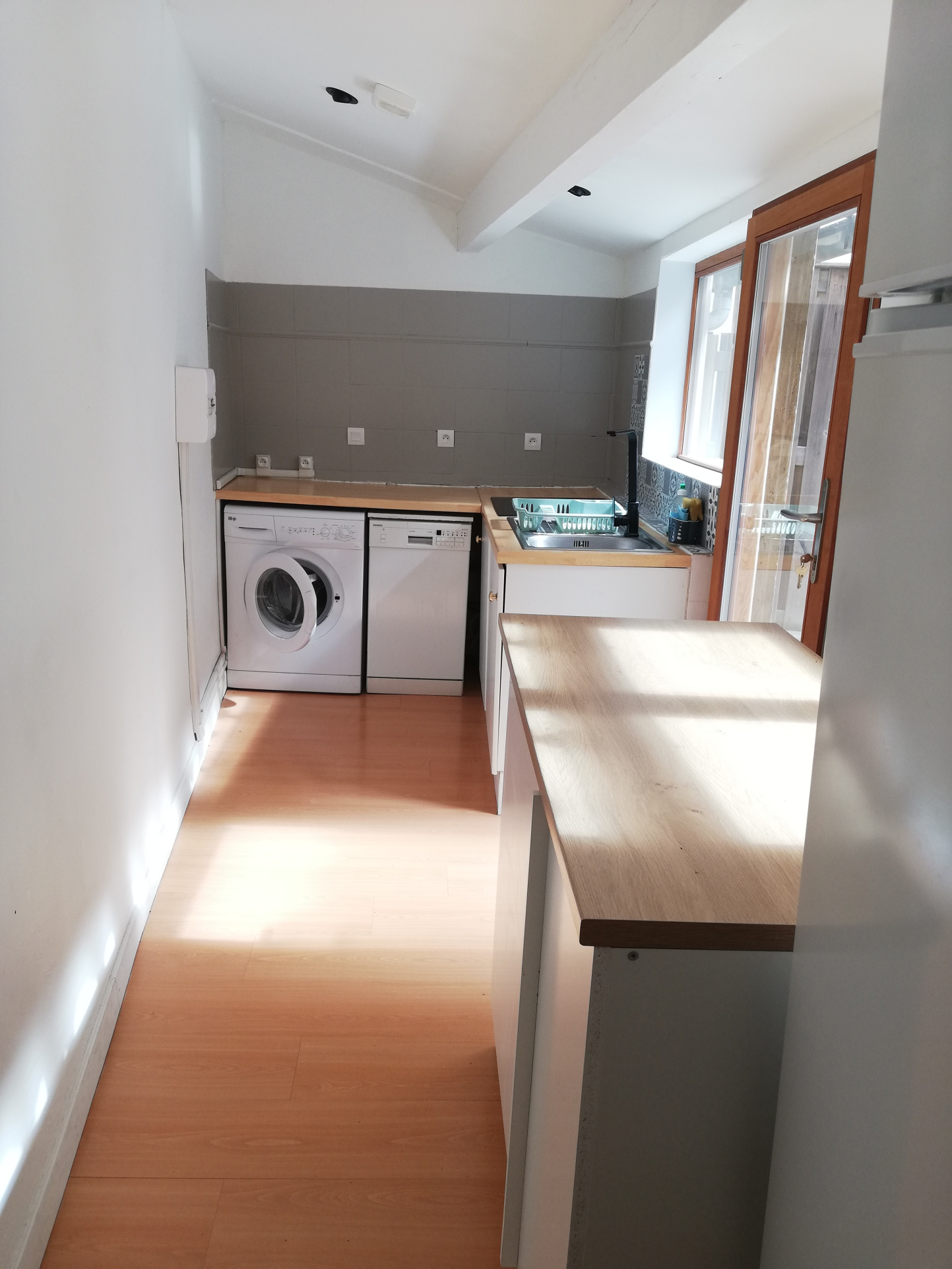 Comprenant: entrée avec 2 placards, séjour, coin cisine équipée (plaques de cuisson, lae-vaisselle, frigo-congélateur, machine à laver), coin nuit, salle d'eau, WC séparé, cour et une cave en rez de chaussée.