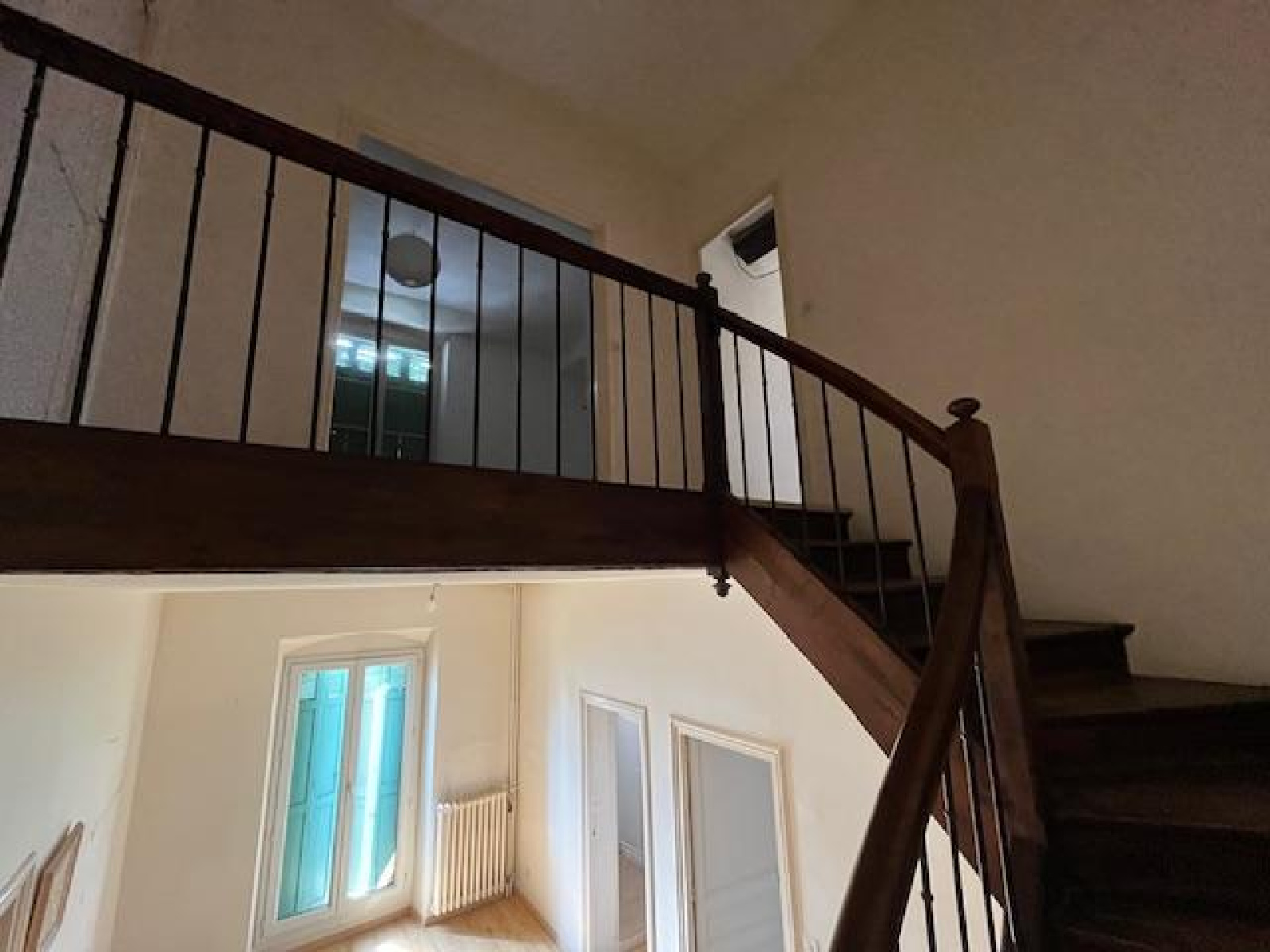 A l' étage: Deux grandes chambres avec placards, salle de bains, WC, balcon.